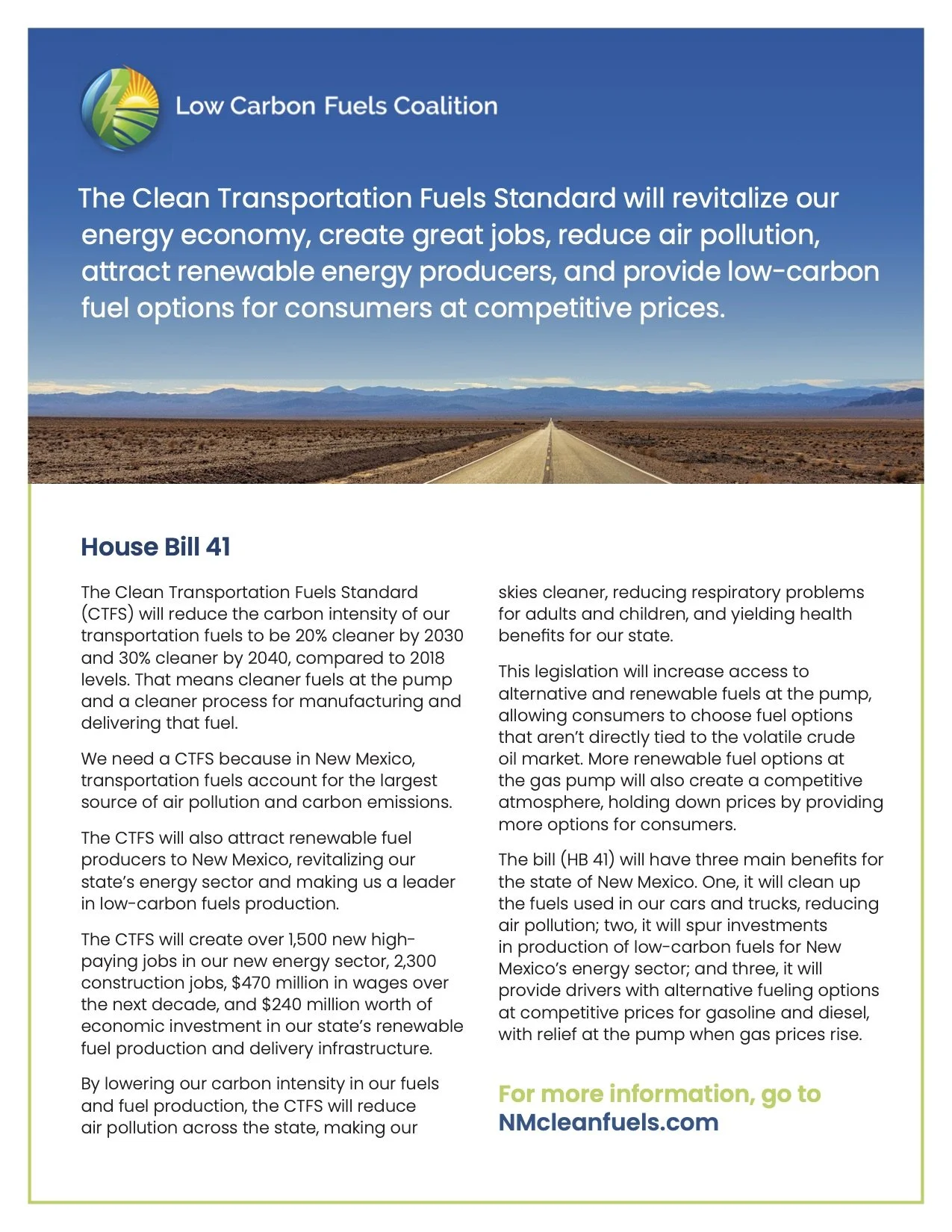 The Clean Transportation Fuels Standard (HB 41) was signed into law by Governor Lujan Grisham on March 5, 2024.